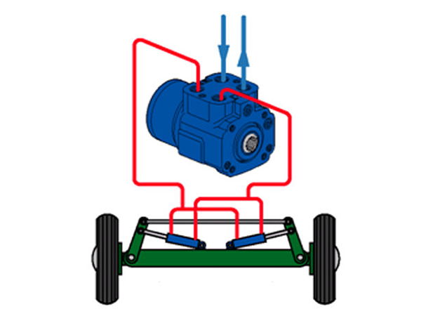 When the steering wheel is turned, the steering unit meters an oil volume proportional to the rate of rotation of the steering wheel.This volume of oil is directed to the appropriate side of the steering cylinder, while simultaneously the displaced oil is directed to tank.